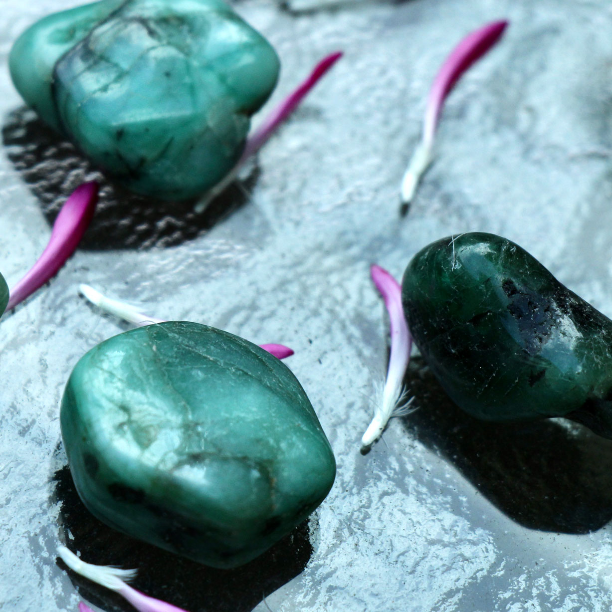 Each high-quality Emerald small tumble stone is between 10-25mm and is unique in shape and tone with varying degrees of black spots and shade. Each stone comes beautifully packed with an information card outlining its benefits as well as cleansing instructions.