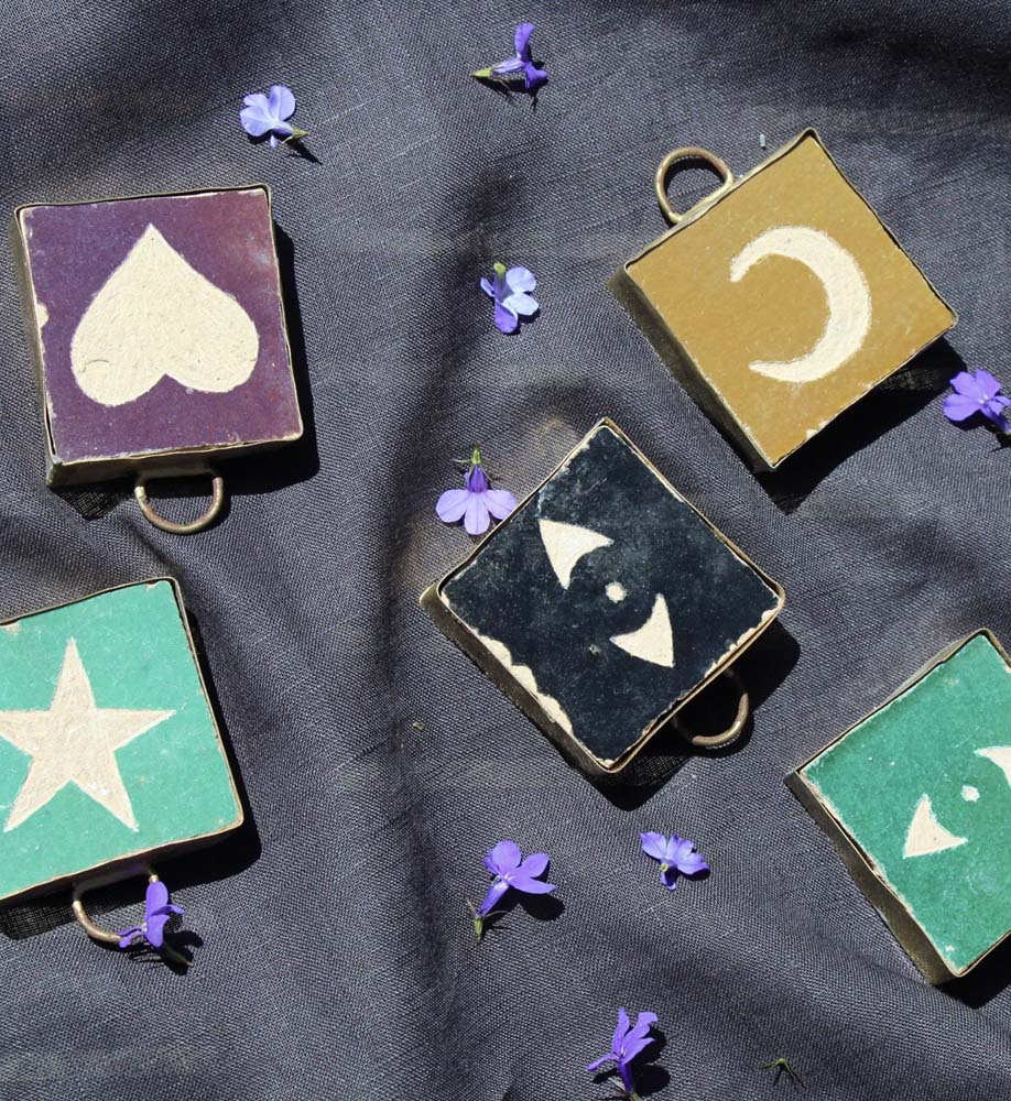 Available in yellow, green, and purple, each tile features a unique symbol, making them ideal for mixing and matching to suit your aesthetic. Because they’re handmade, no two tiles are exactly alike each one carries its own character and charm, making them a truly special addition to your home.