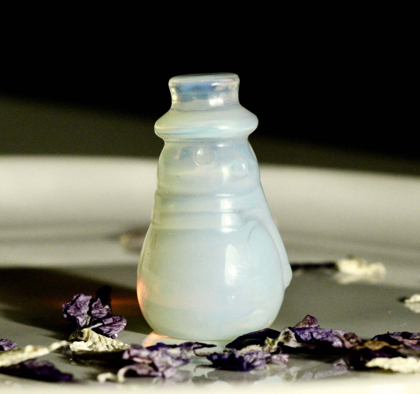 Each Opalite Mini Snowman carving is 4 cm and is milky, fluorescent and translucent with dazzling rays when placed near sunlight. Each carving comes beautifully packed in seasonal-themed packing including an information and cleansing instruction card for the Opalite carving.
