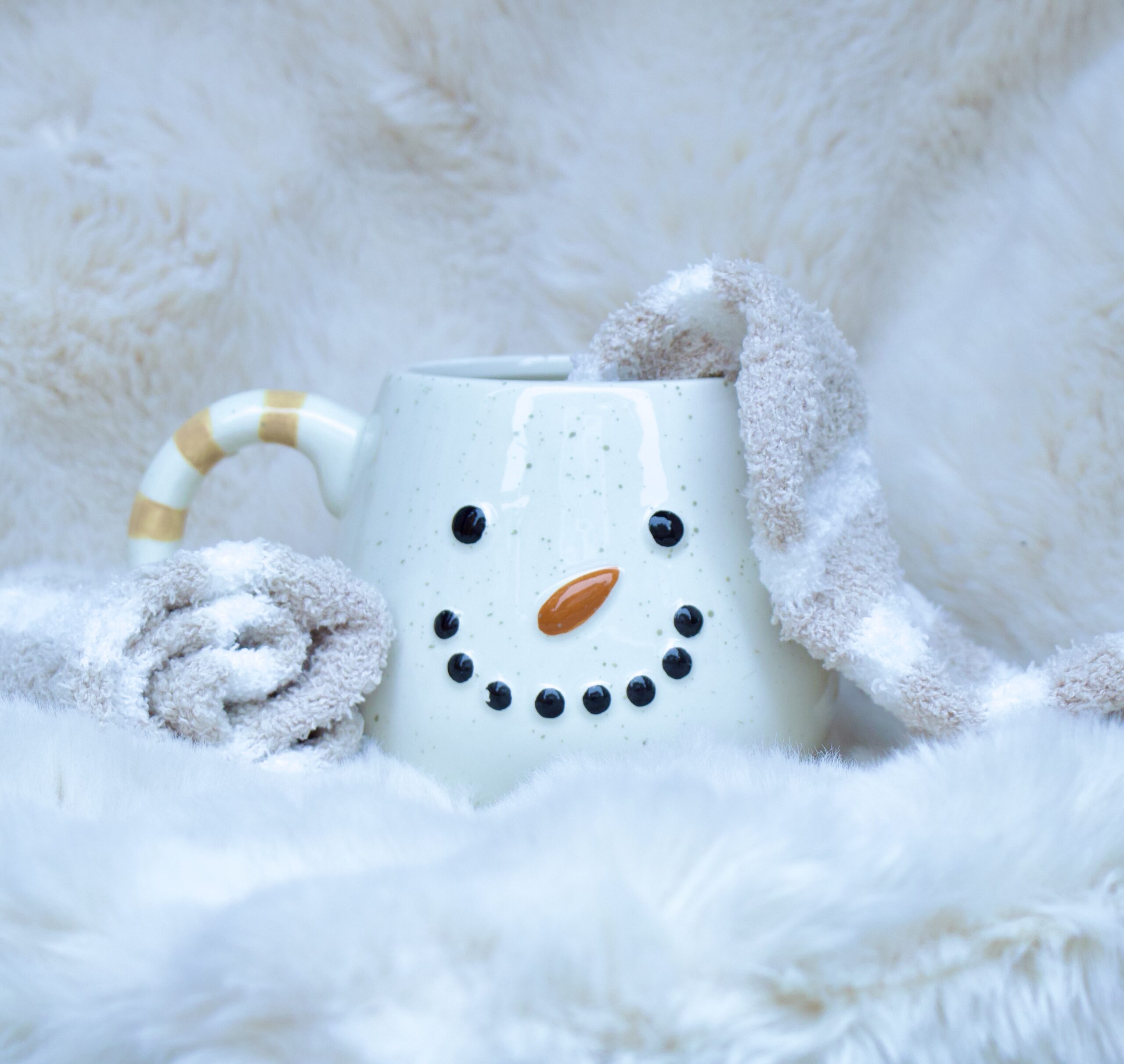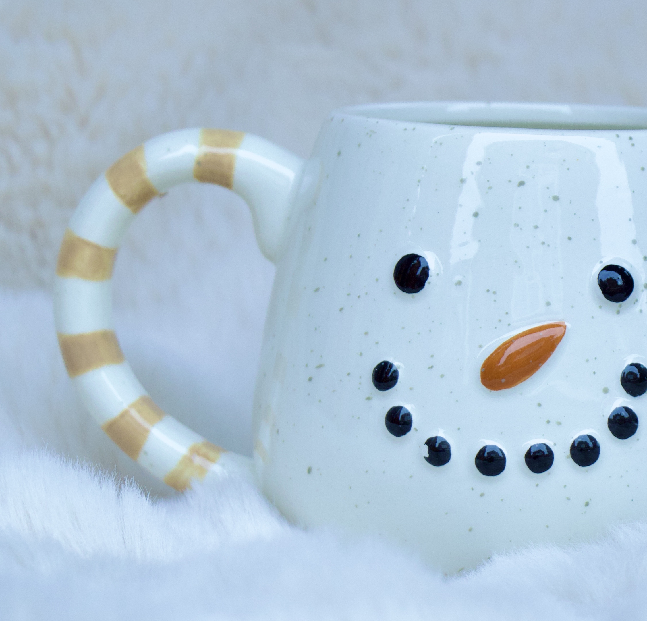 Brighten up a winter day with this charming snowman-shaped mug!